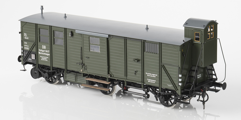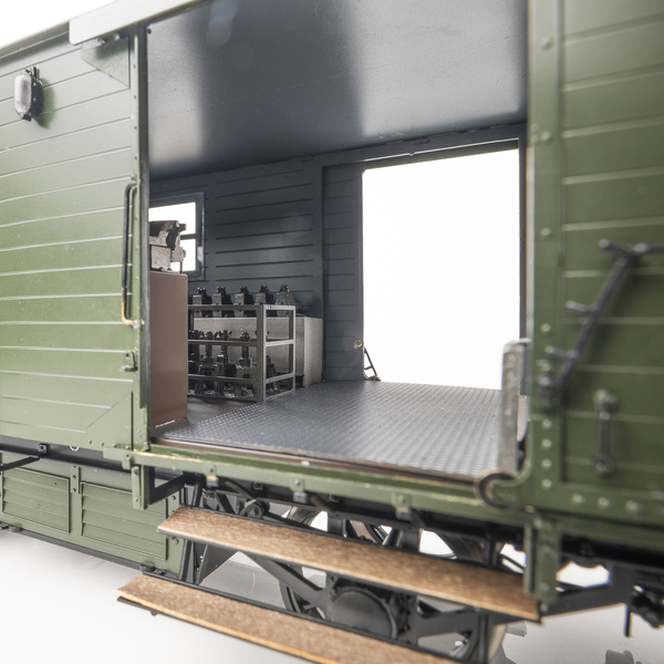 Die Modelle werden als hochdetaillierte Fertigmodelle in Messingbauweise gefertigt. Die Schiebetüren am Wagenkasten lassen sich öffnen, ebenso die Türen am Bremserhaus. Die Puffer und die beiden Zughaken sind gefedert. Alle Details werden maßstäblich und epochengerecht dargestellt, ebenso die Lackierung und Beschriftung. Die Werkstattwagen besitzen eine Innenbeleuchtung und eine Nachbildung der Inneneinrichtung.